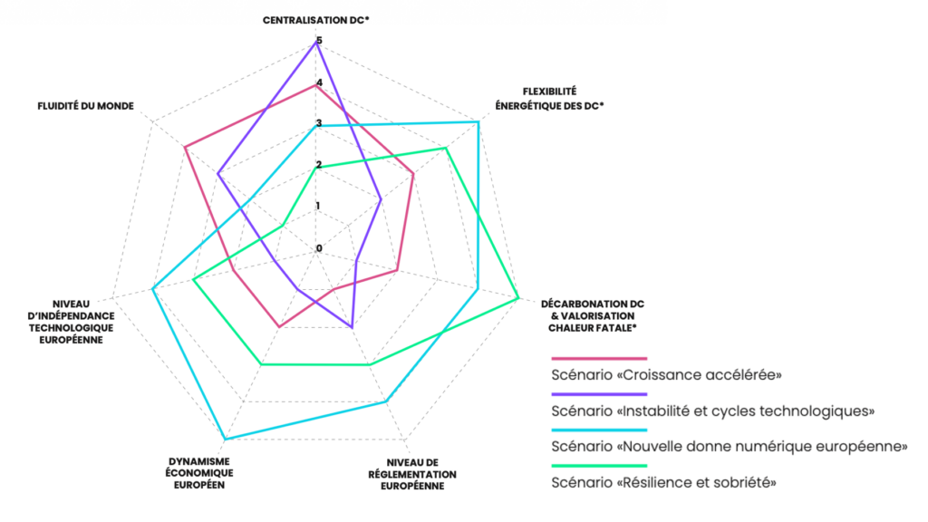 L’étude DATA 2040 met en évidence 4 futurs constrastés, allant d’une croissance accélérée portée par l’IA à un modèle de sobriété territoriale et résiliente. Entre ces pôles, se dessine progressivement une vision plus systémique où calcul, données et énergie s’ajustent dynamiquement aux besoins, aux contraintes physiques et aux tensions géopolitiques.